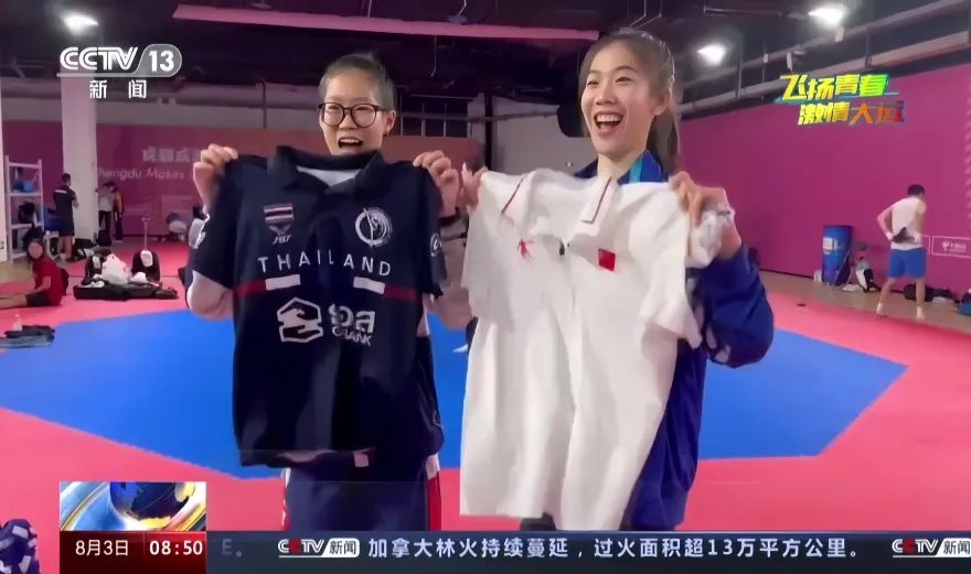 8月3日晚,央视《新闻联播》节目也报道了泰国运动员班妮巴的中国情缘,本届大运会不仅让她收获了跆拳道女子-49公斤级项目的金牌,最开心的是还结识了新的朋友。