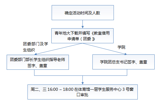 (4)若已申请教室需取消,请至少提前1天向团委办公室电话提出取消借用,联系电话:82321665。
