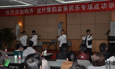 中国地质大学(北京)笛箫民乐协会成立于2007年春,是一个年轻而充满活力的社团,社团成员主要为民乐爱好者,协会本着“以笛箫为媒,品民乐之美,承名族精粹,振国乐声威”的宗旨,以丰富校园文化生活、提高大学生文化素养,弘扬传统文化为己任。我社团和北大、北航、北师、中财、北医、农大、北林等高校经常进行交流,建立了兄弟般的友谊;我社团的主要日常活动有以笛箫为主的民族乐器培训、民族乐器排练、民乐雅集、联谊等。我社团自成立以来每年均有上百名民乐爱好者加入,在郑文萍老师的指导下,我社团成员先后到中央财经大学、北京大学医学部、北京音乐厅参加演出等,并取得良好的效果。我们在困难中成长;我们在成长中收获;我们在收获中快乐!