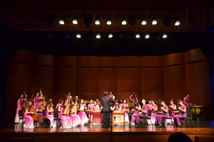 我校大学生艺术团民乐团由校团委张翃滔老师担任指导教师,特聘来自中国音乐学院、中央民族乐团、中国广播民族乐团的优秀青年教师及国家一流演奏员进行业务指导工作。民乐团从成立并发展至今,已成为一个声部配置较为完善、人员配备充足、有能力承接现代管弦乐作品的优秀表演分团。2013年第四届北京市大学生艺术展演活动中,民乐团凭借《草原天地》摘得民乐小合奏组一等奖;2016年北京市大学生艺术节中,更凭借《舞之光影》、《偶·戏》荣获民乐室内乐普通甲组金奖。